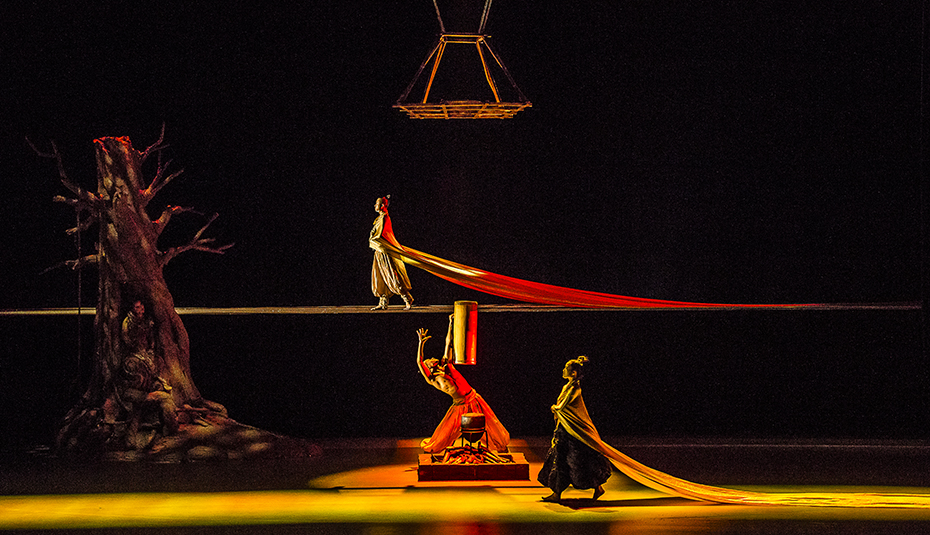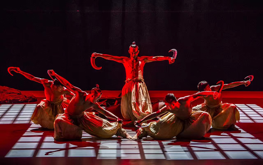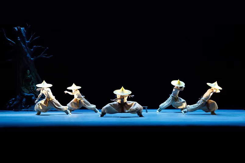 《巫卡調(diào)恰》的漢語意思是外婆的歌謠,這部舞蹈詩的創(chuàng)作植根于當(dāng)?shù)孛缱逦幕?,又拓展到整個苗族社會,通過巫卡(外婆)吟唱古歌這一主線,詮釋了苗族遷徙史以及苗族社會生活的各種習(xí)俗,具有強(qiáng)烈形式感和邏輯性。