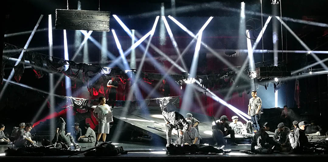 為紀(jì)念紅軍長征勝利80周年,軍委政治工作部話劇團(tuán)聯(lián)手中共成都市委宣傳部創(chuàng)作排演的敘述體話劇《從湘江到遵義》9月28日在京成功首演。該劇由著名導(dǎo)演宮曉東執(zhí)導(dǎo),特邀國內(nèi)著名燈光設(shè)計邢辛擔(dān)任燈光設(shè)計、著名編導(dǎo)孫涓涓任形體設(shè)計。浩洋電子革命性劇院式電腦燈V1000P、內(nèi)置兩套可任意切換光學(xué)系統(tǒng)的三合一全能王電腦燈G12 HYBRID和頂級高顯色性電腦搖頭切割燈V3000P等一大批高品質(zhì)特寶麗燈光傾情獻(xiàn)力,為該劇成功首演保駕護(hù)航。
