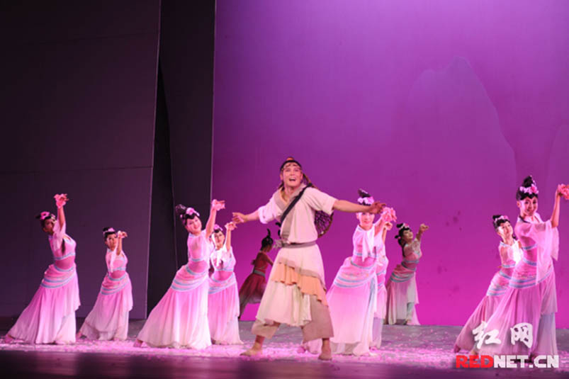 舞劇《桃花源記》以田園詩人陶淵明彈奏無弦琴開篇,將陶淵明對世事煩惱的疏解與漁郎不幸的遭遇及其偶遇桃花源、再尋桃花源的傳奇經(jīng)歷進行融合,使人們通過該劇可以體味到當(dāng)時民生的艱難以及追求自然和諧理想社會的深層表達(dá)。該劇是2015年度國家藝術(shù)基金資助項目、湖南省委宣傳部項目資助、湖南省文化廳文藝創(chuàng)作專項扶持資金項目。
