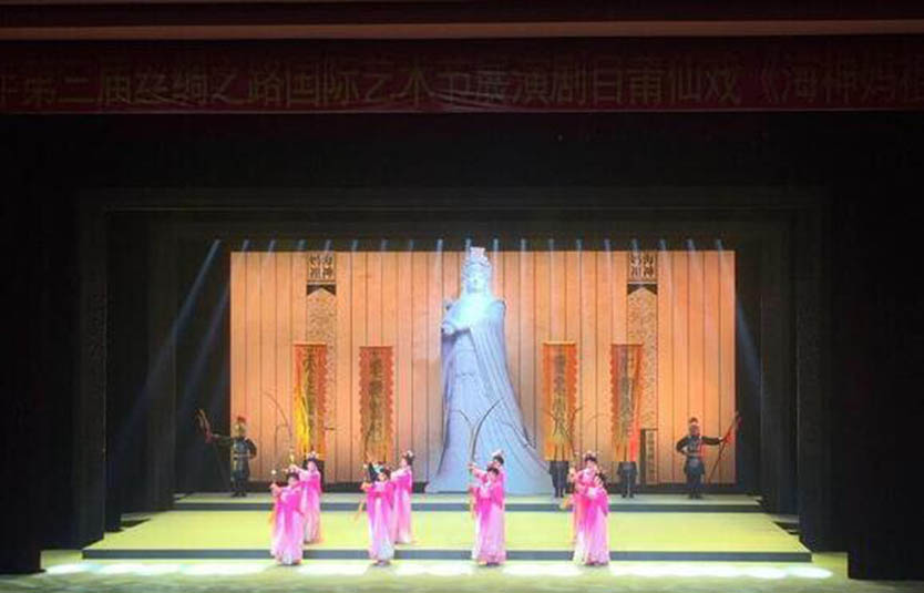 現(xiàn)代的燈光音響,色彩艷麗的戲裝,清悠婉轉(zhuǎn)的唱腔,古今融合的莆仙戲在2016年第三屆絲綢之路國際藝術(shù)節(jié)散發(fā)奪目光彩,在場觀眾如癡如醉地欣賞《海神媽祖》劇目,沉醉在媽祖娘娘正能量的無私精神里。