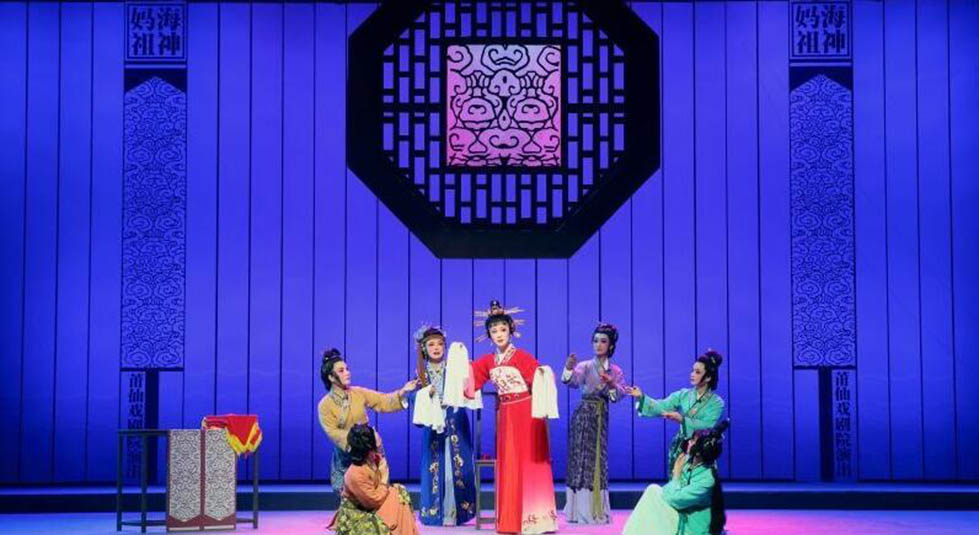 莆仙戲《海神媽祖》主要描述的是林默娘痛心海難無情而無私救苦救難,深得上天感動,最終被授予遇災(zāi)警示及造福于民的法力,從平凡漁家女子到海上女神的傳奇。劇目以敘事詩般的藝術(shù)手法刻畫出媽祖娘娘扶危濟困的偉大形象,靈活展示了媽祖娘娘德、行善、大愛”的精神。隨著海上貿(mào)易和文化交流的延伸,媽祖信俗從沿海各地傳播到東南亞乃至全世界,媽祖也因此成為了“海上絲綢之路保護神”。