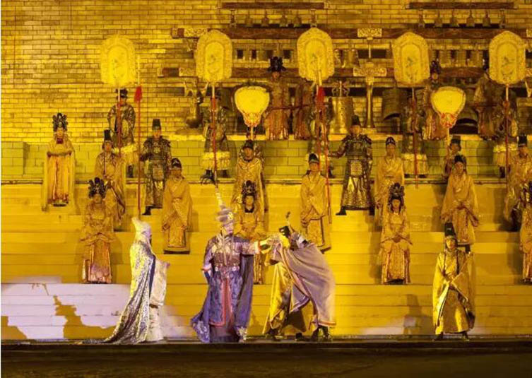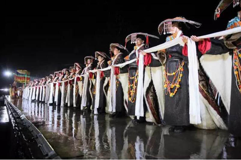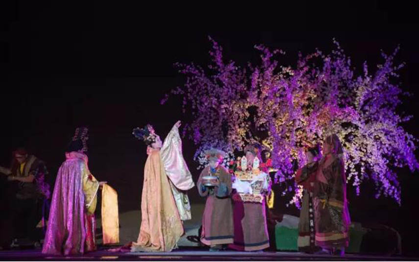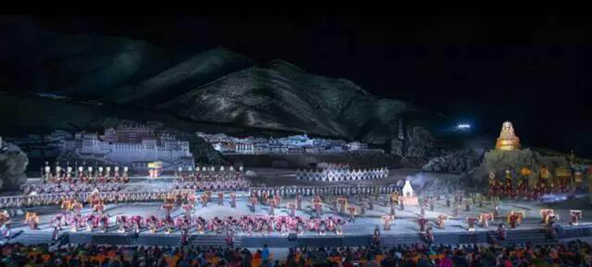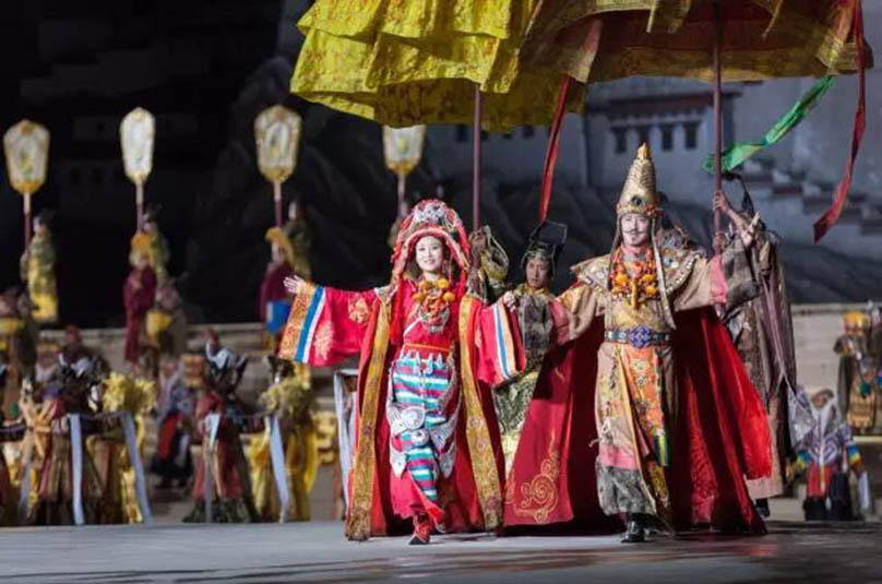 大型藏族實(shí)景劇《文成公主》主要講述文成公主入藏歷經(jīng)艱難的征途和曲折起伏的心路歷程,演繹大唐盛世的愛情傳奇,傳唱漢藏和美的動人史歌。該作品分為“大唐之韻”、“天地梵音”、“藏舞大美”、“藏舞大美”及“藏舞大美”五幕,深度融入漢藏歷史文化、民族風(fēng)俗、自然景觀等,引入了大唐歌舞和流傳久遠(yuǎn)的藏舞、藏戲、佛號念唱等,通過人工舞臺與自然山水的結(jié)合,用高科技的手段呈現(xiàn)非物質(zhì)文化遺產(chǎn),把戲劇、音樂、舞蹈和現(xiàn)代舞美手段融為一爐,構(gòu)成華美樂章。