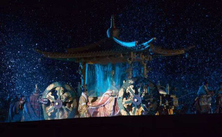 《文成公主》 藏文化大型史詩劇一直在不斷地進(jìn)行創(chuàng)新和升級,在燈光方面,劇組使用更多元化的色彩,營造出華美而奇幻的舞臺效果,并運(yùn)用更多的高科技手段,使演出效果更驚艷、更富有傳奇色彩。例如在文成公主碎寶鏡這一段,將通過特殊的舞美燈光設(shè)備,將寶鏡摔在地上的場景表現(xiàn)得更逼真,寶鏡碎片飛起來的場景,也能夠通過高科技表現(xiàn)出來,現(xiàn)場感更強(qiáng)。