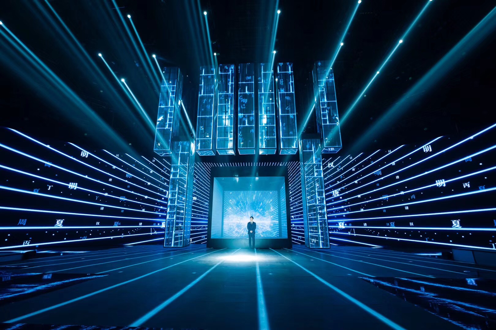 舞美設(shè)計(jì)簡(jiǎn)約不簡(jiǎn)單,通過燈光變幻營造出五千年時(shí)空重疊,古今碰撞的文化磁場(chǎng)。