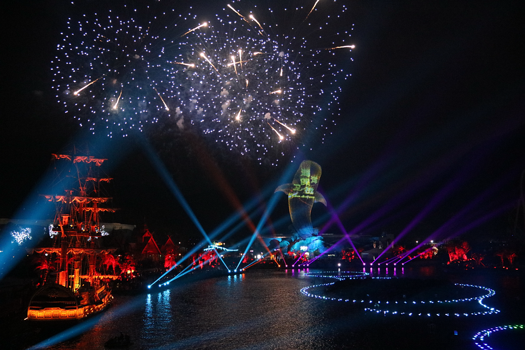 這是一場(chǎng)集無人機(jī)、煙花表演、燈光秀、激光秀、噴泉匯演、水上飛人、摩托艇特技等元素的震撼視覺盛宴,炫酷的燈光與幻彩的煙花點(diǎn)亮了整個(gè)海洋王國的夜空。浩洋燈具以品質(zhì)穩(wěn)定、功能完善、高亮度輸出、色彩效果豐富等特點(diǎn)完美完成了燈光演出,炫麗的光束伴隨著音樂舞動(dòng),在黑夜中劃出美麗的弧線,讓現(xiàn)場(chǎng)觀眾體驗(yàn)光束伴隨著強(qiáng)勁音樂節(jié)奏所締造出的燈光波浪,其出色的燈光科技表現(xiàn)手段贏得了長隆集團(tuán)的深度肯定及認(rèn)同。