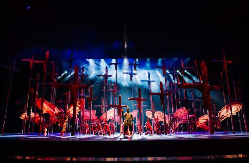 在《秦》秀燈光效果中,總制作著名燈光設(shè)計(jì)沙曉嵐采用獨(dú)特的燈光風(fēng)格,時(shí)而黑白調(diào),時(shí)而金碧輝煌,將大秀的感情色彩表現(xiàn)得淋漓盡致,再現(xiàn)大秦帝國(guó)的恢弘。