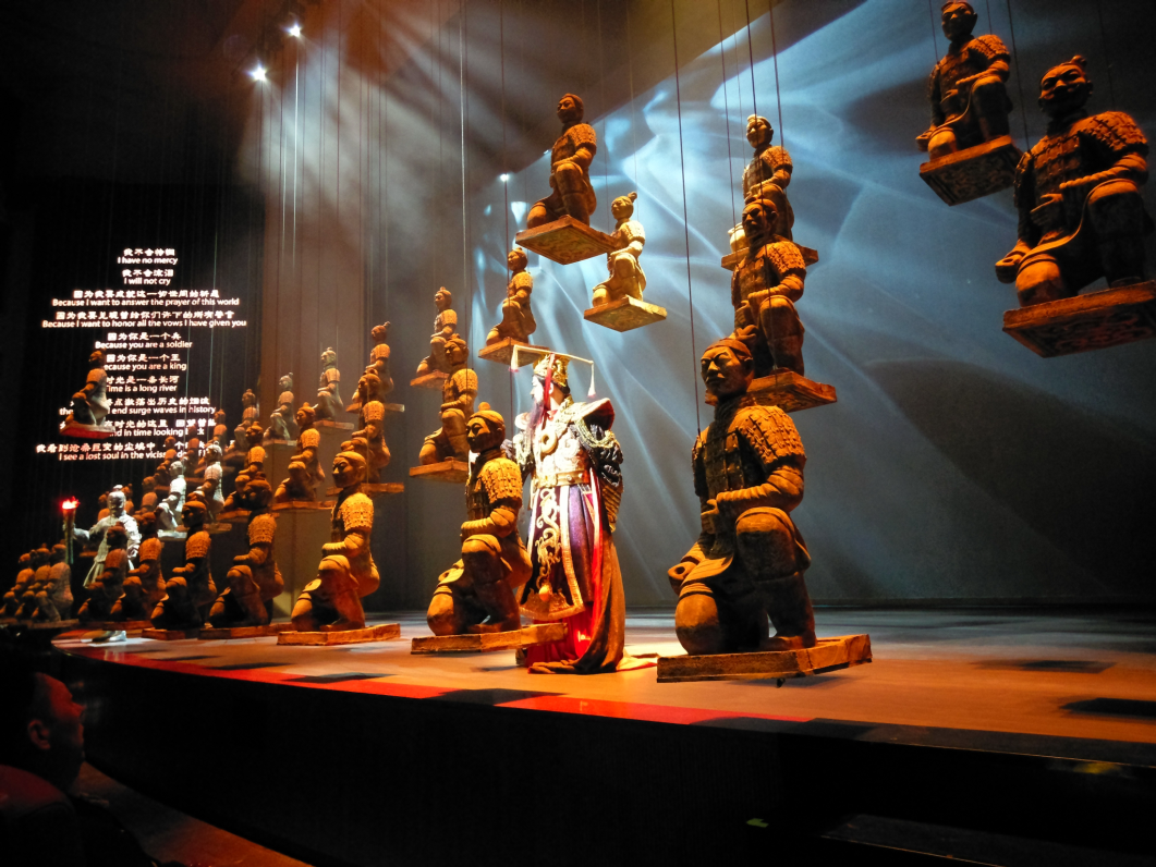 作為臨潼區(qū)2018年推出的重大文化產(chǎn)業(yè)項(xiàng)目之一,多媒體史詩(shī)大秀《秦》耗資了7億巨資打造,在充分借鑒國(guó)內(nèi)外全新的演藝形式和技術(shù)手段后,將現(xiàn)代聲光、電技術(shù)與舞美相結(jié)合,采用超寬幅全息影像、冰屏介質(zhì)投影等新型舞臺(tái)科技,應(yīng)用冰屏與紗幕的完美配合,渲染整個(gè)舞臺(tái)的氛圍,打造一臺(tái)多維立體感的大秀,在舞臺(tái)上活化兵馬俑,生動(dòng)地帶領(lǐng)全球觀眾感受大秦帝國(guó)的魅力。