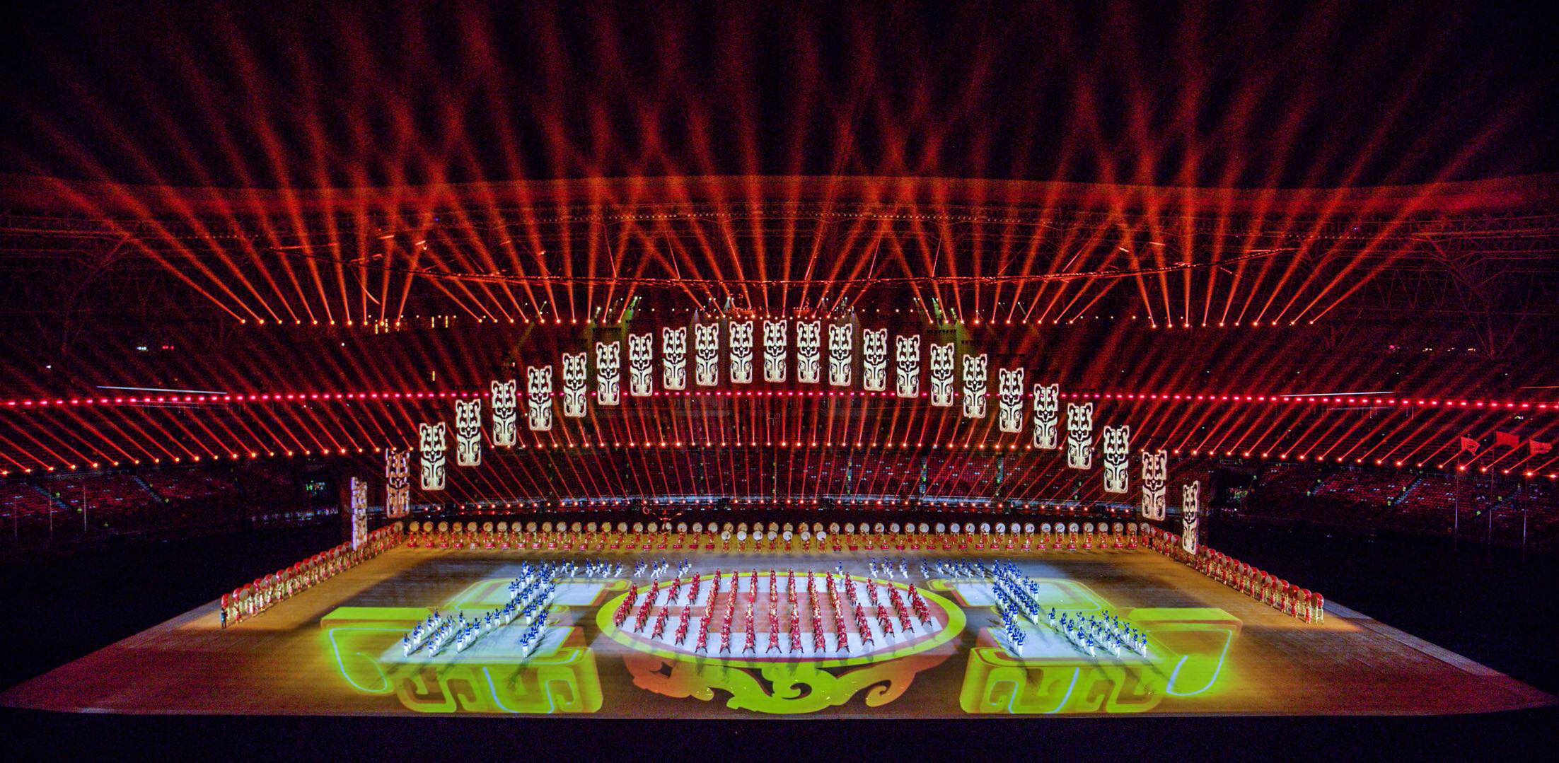 運(yùn)動(dòng)會(huì)開(kāi)閉幕式整體設(shè)計(jì)的核心理念為“奮斗幸福觀”,開(kāi)幕式的主題為“奮斗新時(shí)代“,閉幕式將以“幸福新征程”為主題與之呼應(yīng)。開(kāi)幕式演出運(yùn)用了大型燈光設(shè)備、舞臺(tái)機(jī)械裝置、高清投影設(shè)備、懸掛表演裝置、先進(jìn)音響設(shè)備、空中飛行設(shè)備等多種技術(shù)手段,形成地面、舞臺(tái)、空中三維藝術(shù)呈現(xiàn)形式,將中國(guó)傳統(tǒng)文化與國(guó)際先進(jìn)科技進(jìn)行完美結(jié)合,形成一臺(tái)國(guó)際化高水準(zhǔn)的全景化演出。