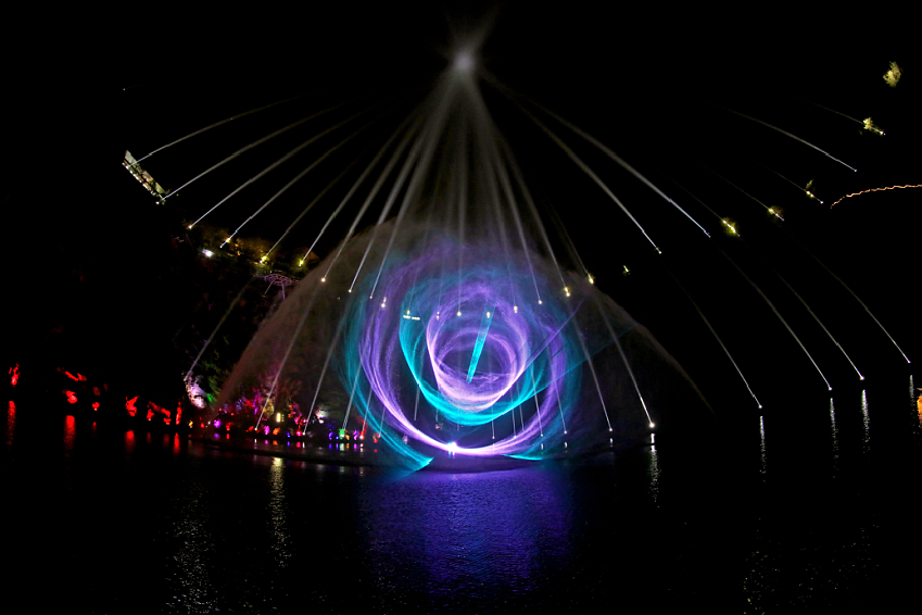 這場在上海佘山世貿(mào)洲際酒店驚艷上演的大型奇境光影水秀《ECHO 回響》,由魚果文化科技籌備1年傾力打造,清華大學(xué)美術(shù)學(xué)院信息藝術(shù)設(shè)計系副教授王之綱擔(dān)任總導(dǎo)演,浩洋電子承擔(dān)了從產(chǎn)品設(shè)計、系統(tǒng)集成設(shè)計、設(shè)備供應(yīng)、安裝實施、產(chǎn)品應(yīng)用、彩排合成到技術(shù)服務(wù)支持的全部燈光工程項目。特別是在燈光設(shè)備的選用方面,浩洋防水系列產(chǎn)品經(jīng)過多方技術(shù)可行性評測與實測,從多家燈光企業(yè)激烈的競爭中脫穎而出被選定,成為甲方指定的合作品牌方。