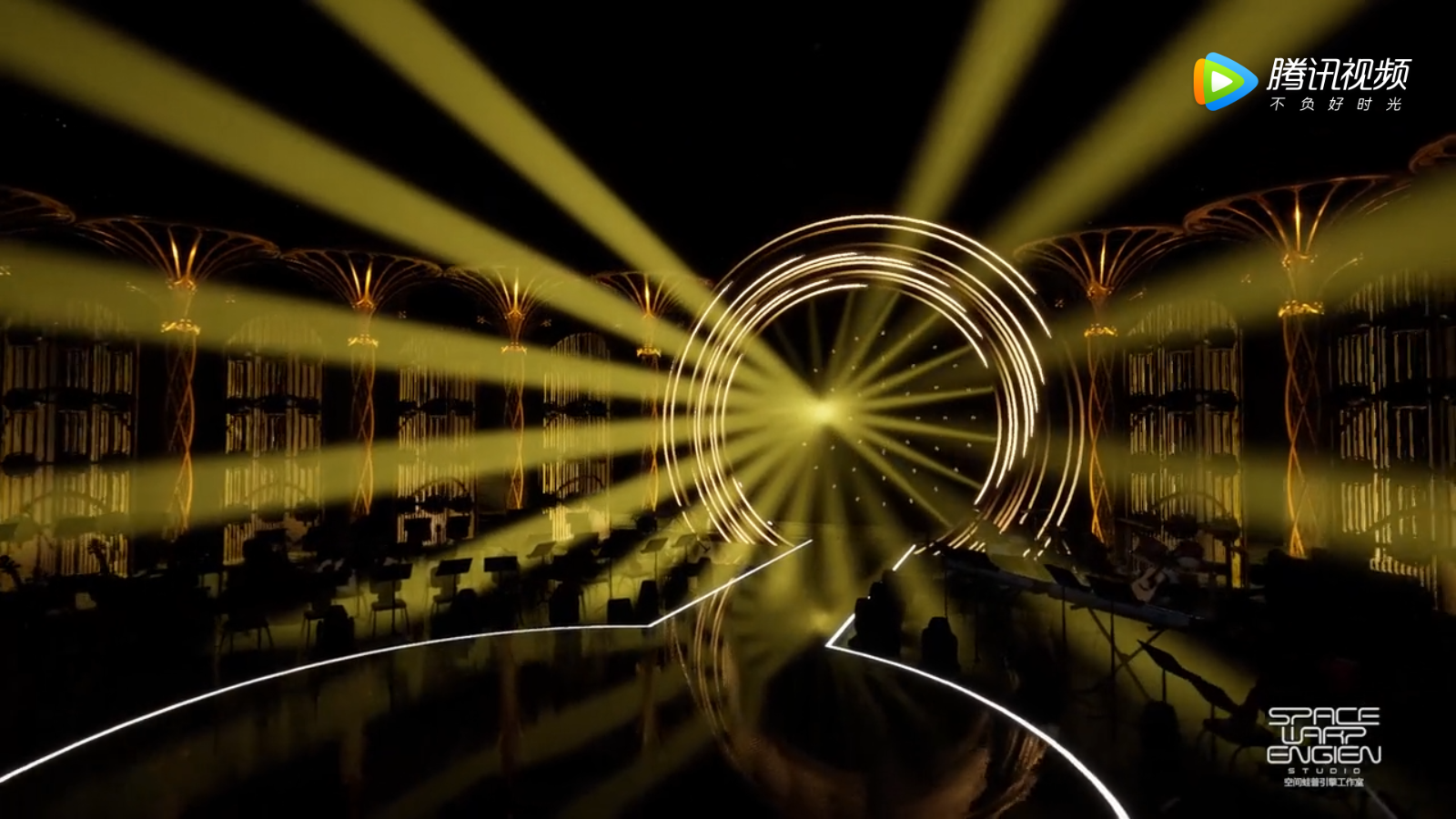 作為本季舞美的情懷加分項(xiàng),極具節(jié)目標(biāo)識(shí)性的圓環(huán)赫然矗立中央,在全新加入的流線燈光的營造下,更具超現(xiàn)代科技氛圍。而圓環(huán)兩邊,順次排開十二根金色珠光圓柱,柱體之間陳列的旋轉(zhuǎn)體則是本季創(chuàng)新的重點(diǎn)。該旋轉(zhuǎn)體分為三面,其中兩面為亞克力三角細(xì)柱,柱上貼有LED數(shù)碼條,當(dāng)歌手演唱時(shí),旋轉(zhuǎn)體可作為渲染燈光的介質(zhì),承接多種曲風(fēng)的氛圍效果;另外一面則為矩形燈陣。當(dāng)浩洋燈光亮起時(shí),貫徹了一如既往的高端視感,打造了新一輪的視覺盛宴,為觀眾帶來璀璨奪目的視覺享受。
