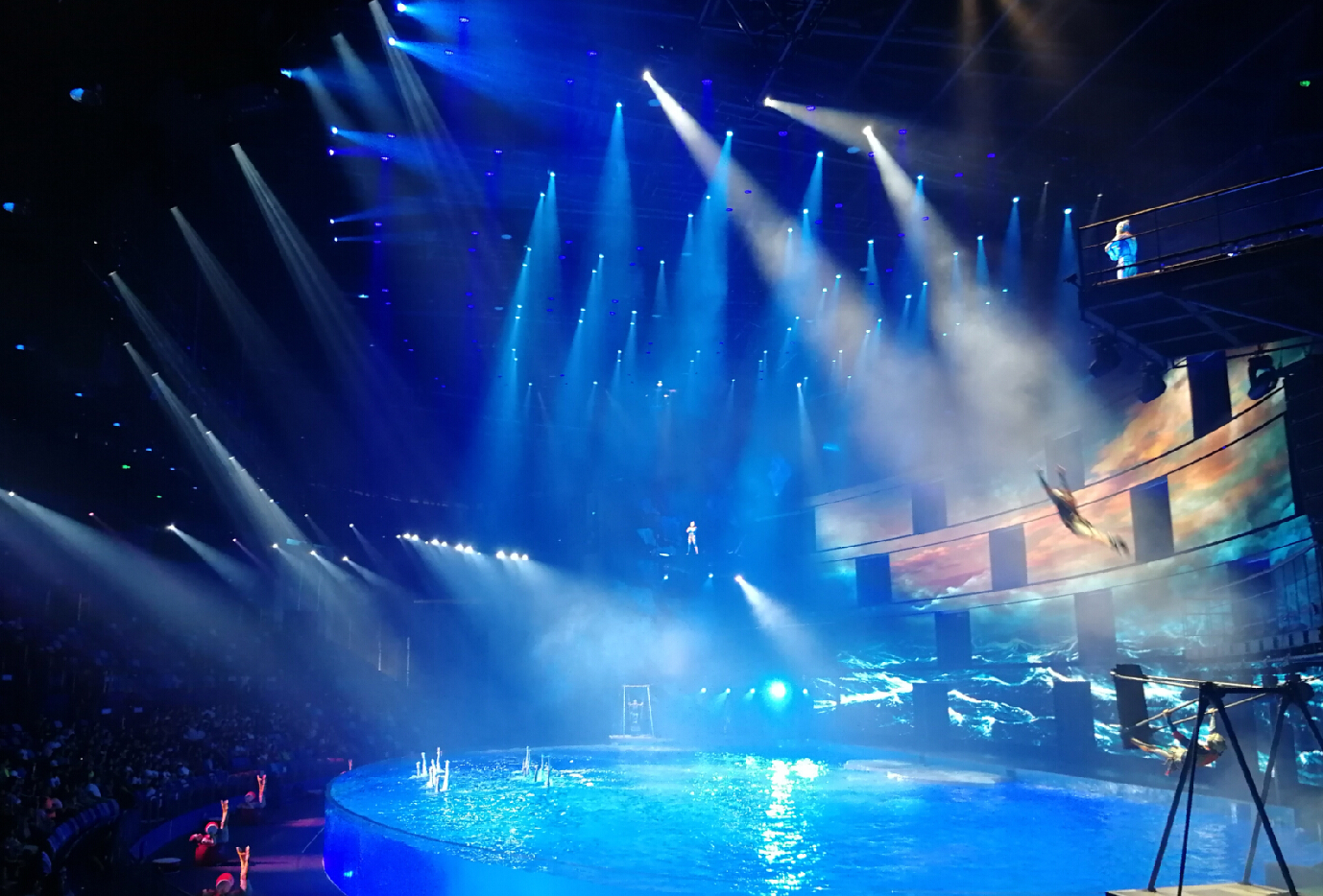 演出中,浩洋電子全能王三合一電腦燈G12HYBRID、切割燈V3000P、圖案燈V2500S、LED PAR燈A51-E近400臺專業(yè)舞臺燈光設(shè)備為現(xiàn)場助陣。浩洋燈光設(shè)備投射出炫目的燈光,與現(xiàn)場的煙霧、水面特效、無人機、各種大型自動化舞美機械在內(nèi)的國際頂尖舞臺技術(shù)相互配合,融合水中芭蕾、空中藝術(shù)、花式跳水等眾多表演元素,共同呈現(xiàn)原創(chuàng)鉅制,還原了傳說中神秘古老的“亞特蘭蒂斯”世界。