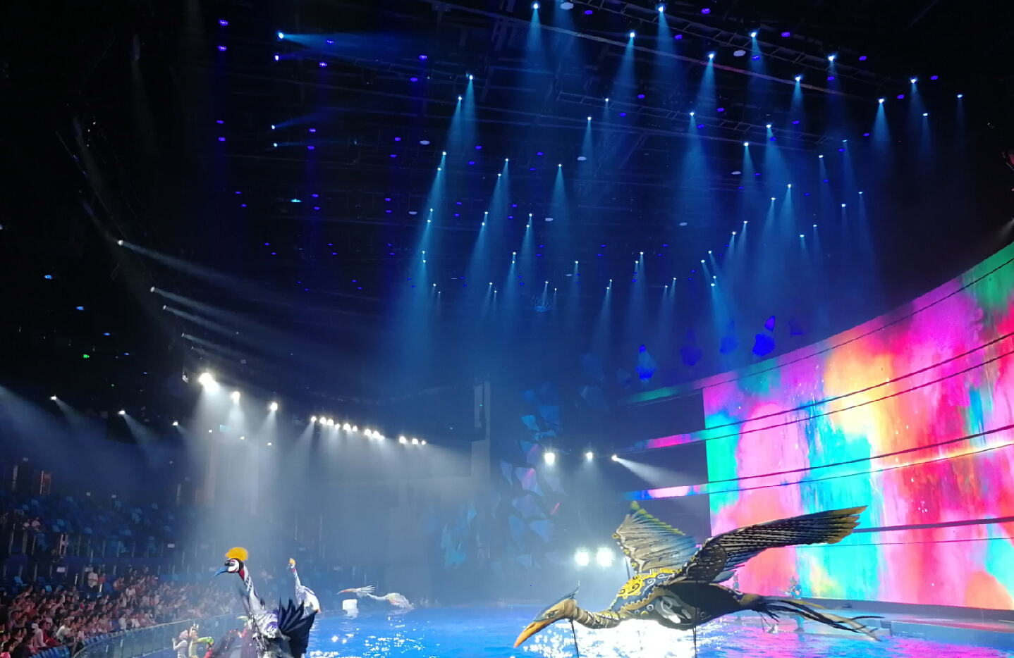 與以往單一劇場表演相比,《C秀》采用海陸空3D立體水舞臺劇場,其中央水舞臺的容量高達(dá)7000立方米,相等于4個奧林匹克標(biāo)準(zhǔn)泳池的容量,水下密布的世界領(lǐng)先的舞臺技術(shù),能瞬間形成奇幻的水面神奇效果。海陸空三位一體的舞臺設(shè)計,搭配三面環(huán)繞式立體的觀眾席,將舞臺與觀眾席融為一體,為觀眾置身于“沉浸式”的觀看體驗。