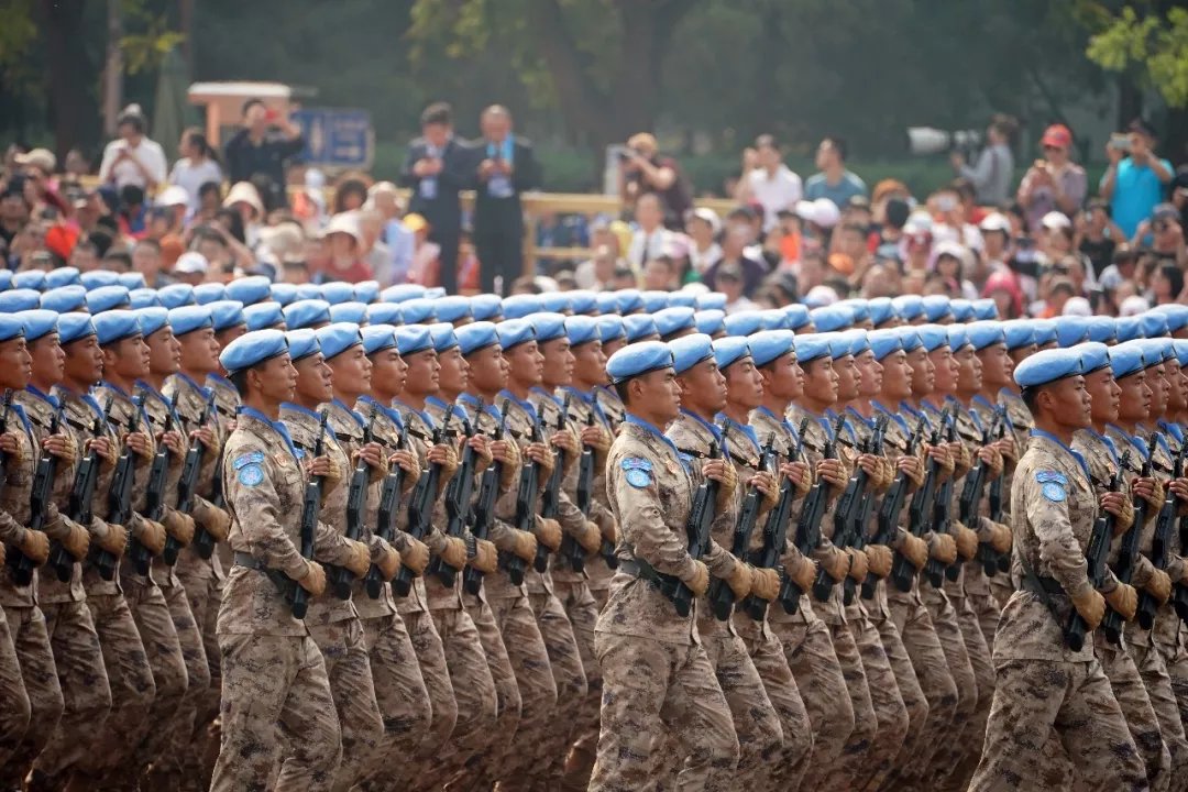 本次徒步方隊(duì)共15個(gè),領(lǐng)導(dǎo)指揮方隊(duì)、院??蒲蟹疥?duì)、文職人員方隊(duì)和維和部隊(duì)方隊(duì)首次亮相,儀仗方隊(duì)也是歷史上規(guī)模最大的一次。其中,維和部隊(duì)方隊(duì)代表的是千千萬萬為了世界和平與安全,奉獻(xiàn)青春與熱血的中國(guó)軍人。此外,女兵方隊(duì)安排兩名女將軍擔(dān)任領(lǐng)隊(duì),以颯爽英姿亮相閱兵場(chǎng),這也是歷次閱兵首次在徒步方隊(duì)安排女將軍受閱。