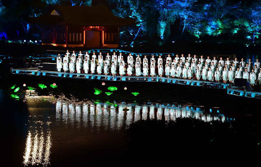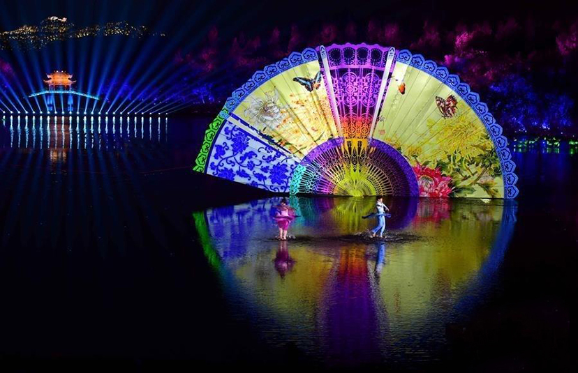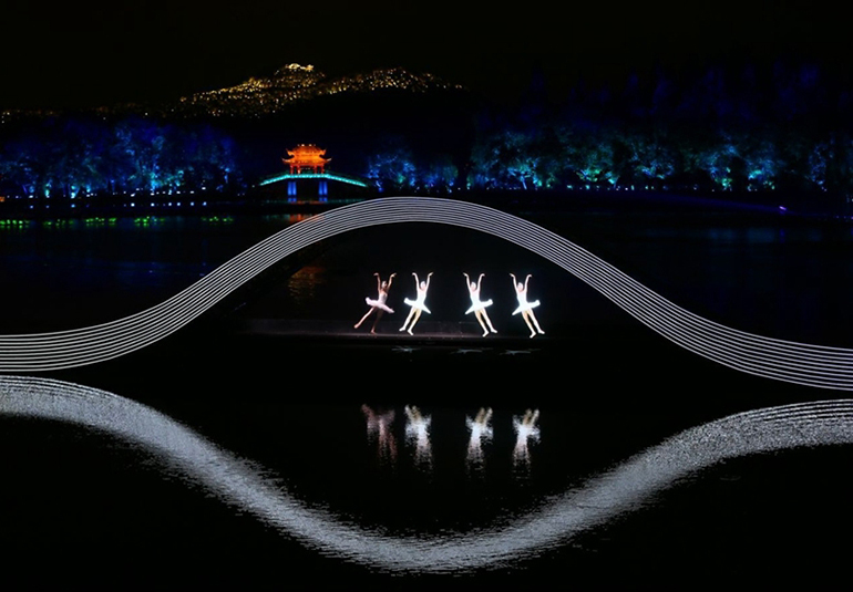 燈光是此次演出的一大亮點,晚會總導演張藝謀說:“50分鐘的演出我們有100個以上的燈光變化,要靠燈光、湖水倒景、月色等方方面面?zhèn)鬟f出詩情畫意?!弊鳛?008年北京奧運會開閉幕式燈光總設(shè)計、2014年APEC歡迎晚宴活動燈光創(chuàng)意總監(jiān),此次G20峰會文藝演出的總制作人沙曉嵐,用燈光對西湖的山、水等自然元素進行藝術(shù)再創(chuàng)作,勾勒一幅驚艷世界的視覺美景。