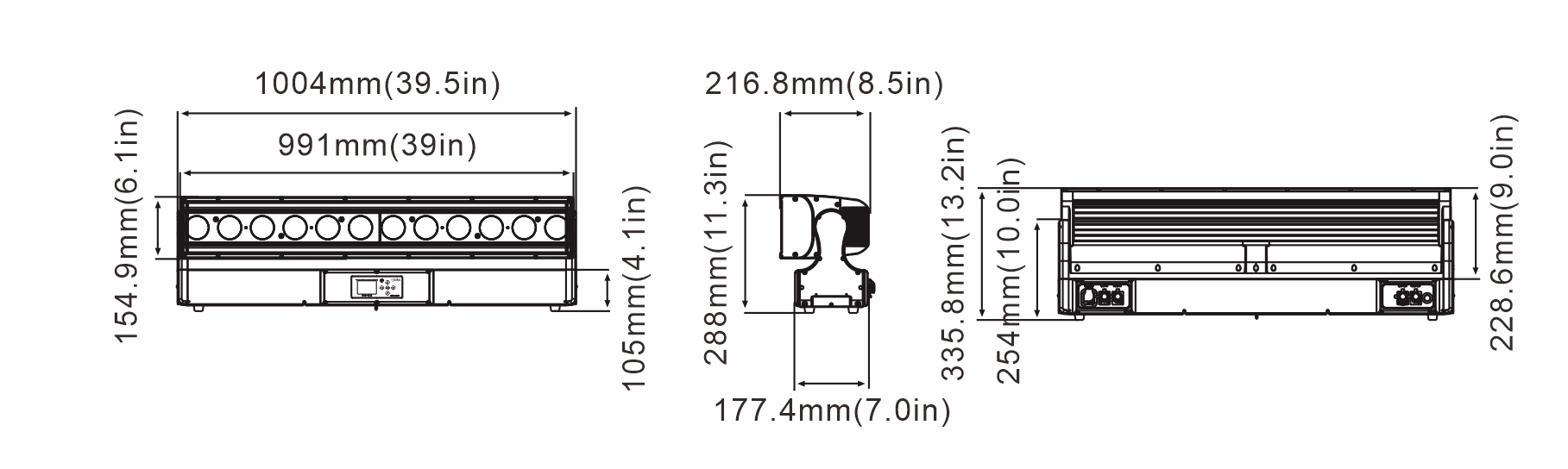 光源:12X60W RGBW LED,48X2W點綴燈,256X1W頻閃燈