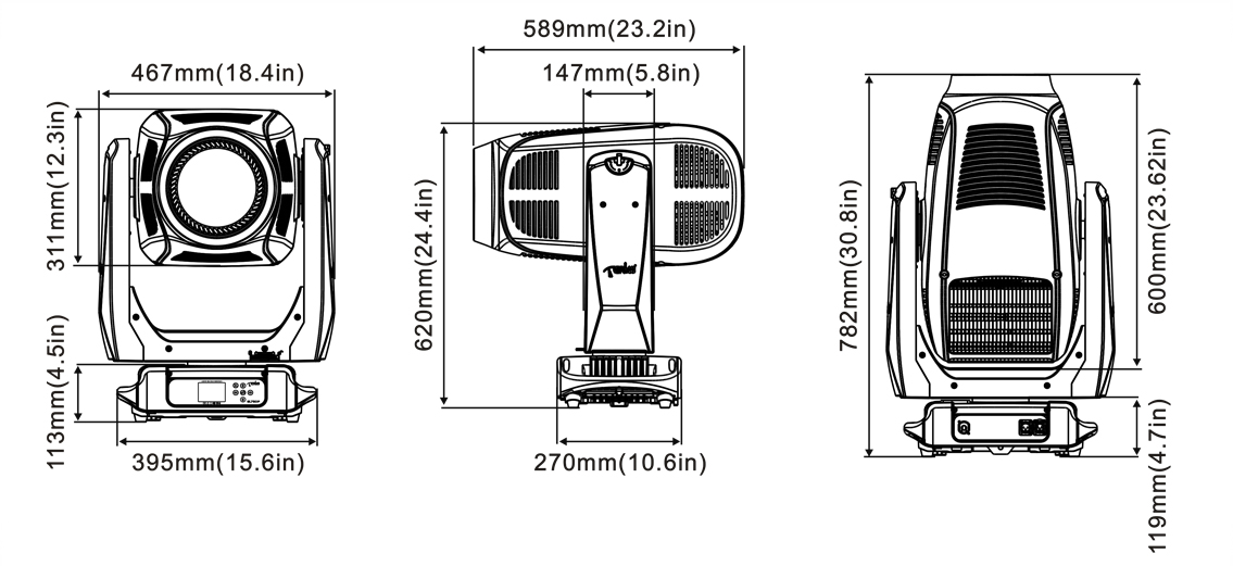可從控臺完成更改DMX地址碼,機器重設等功能