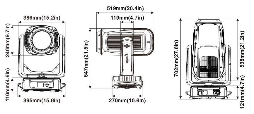 可從控臺完成更改DMX地址碼,機器重設(shè)等功能