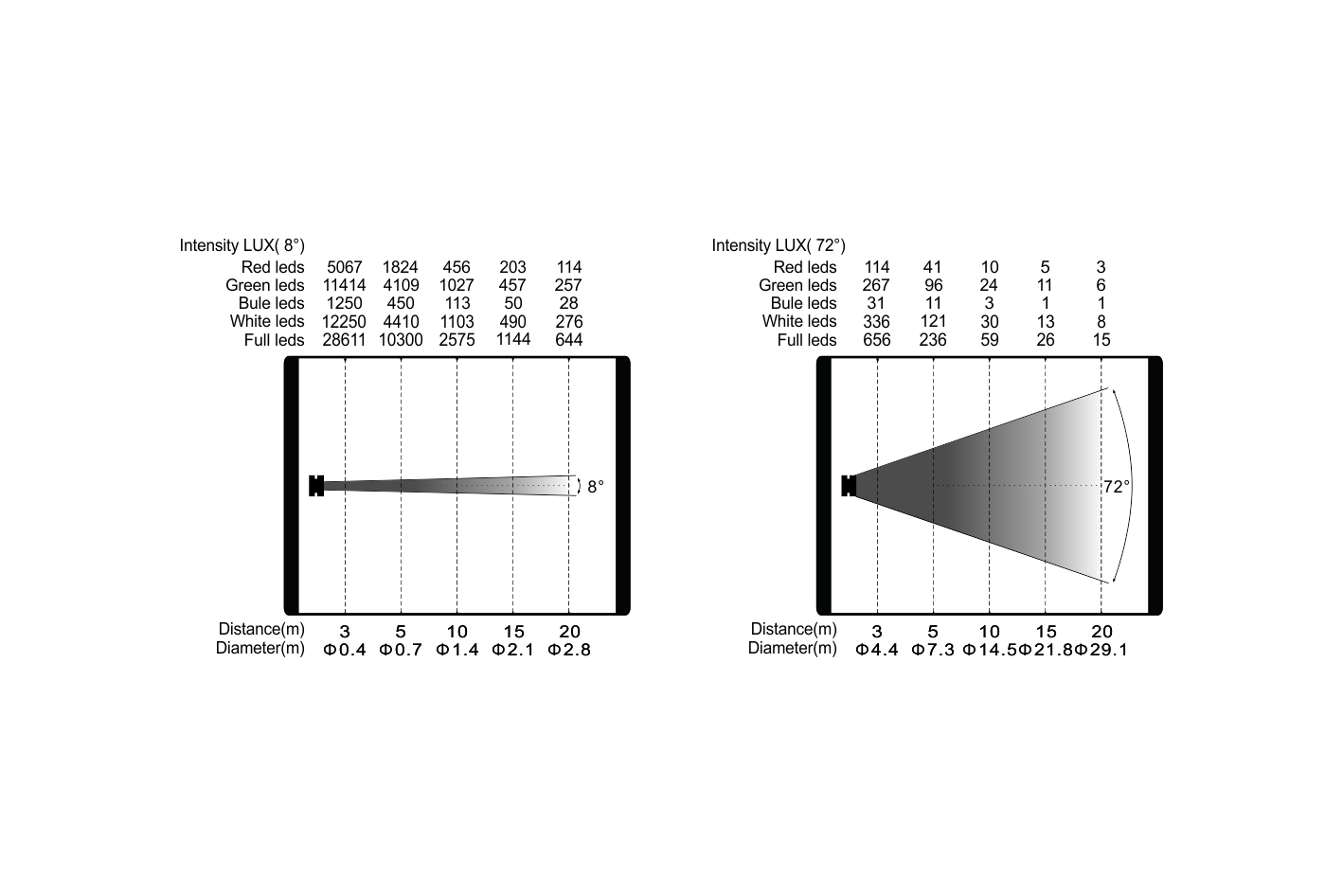 調(diào)光:0-100%線性調(diào)光,可同時(shí)控制4個(gè)主顏色的明暗變化和閉光
