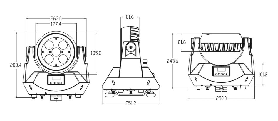 可從控臺完成更改DMX地址碼,機器重設等功能