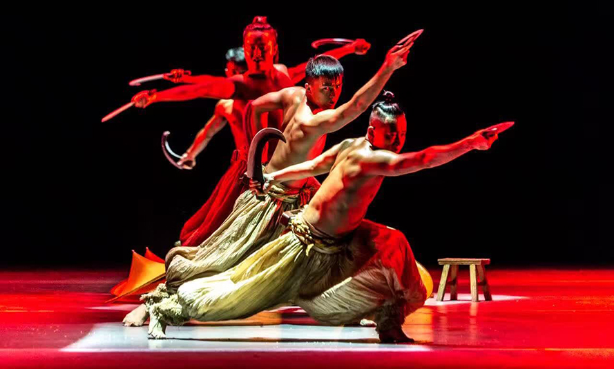 《巫卡調(diào)恰》的漢語意思是外婆的歌謠,這部舞蹈詩的創(chuàng)作植根于當(dāng)?shù)孛缱逦幕滞卣沟秸麄€(gè)苗族社會(huì),通過巫卡(外婆)吟唱古歌這一主線,詮釋了苗族遷徙史以及苗族社會(huì)生活的各種習(xí)俗,具有強(qiáng)烈形式感和邏輯性。