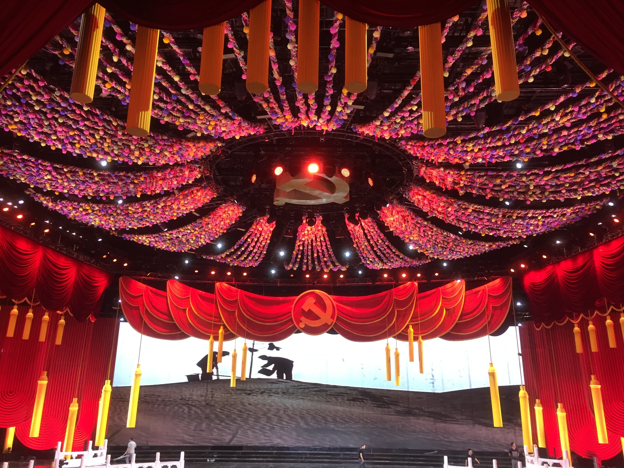 第二,為了突顯宏大的場面,節(jié)目總導演在節(jié)目形式上和單個節(jié)目的表演人數(shù)、道具使用量上都比常規(guī)晚會投入更大,這樣就沒有太多舞臺空間去做合適燈位,但卻要承載如此多的照明需求,這對整個燈光亮度、色彩還原以及光比,和舞臺氣氛的把控是一次非常大的挑戰(zhàn)。