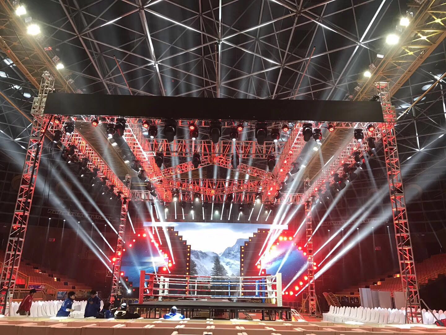 由昆明品諾文化傳播有限公司提供的120多臺浩洋電子專業(yè)舞臺燈光:光束燈G9B、光束燈PT320B、BEAM330等也為大賽提供了足力的燈光支持,銳利的光束、更強(qiáng)的穿透力照亮了賽事擂臺,為總決賽打造一場精彩絕倫的格斗盛宴。