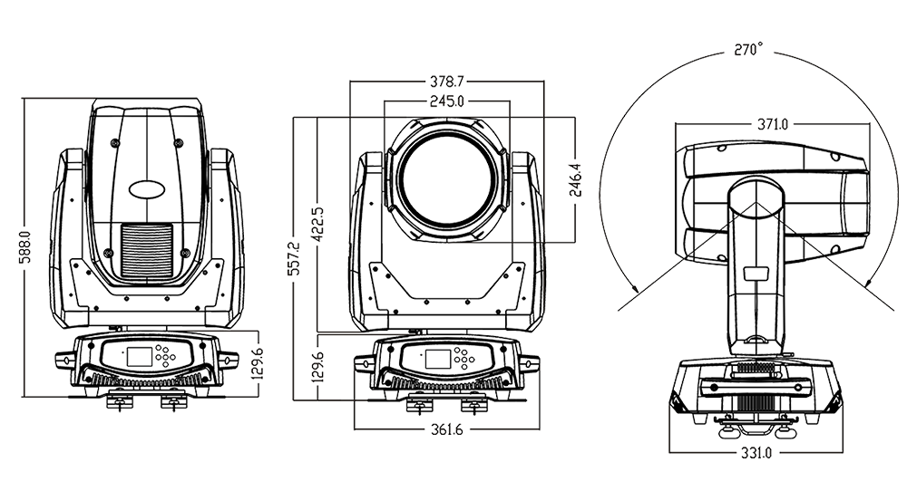 可從控臺完成更改DMX地址碼,遙控開關(guān)燈泡,機器重設(shè),聲控模式的轉(zhuǎn)換等功能