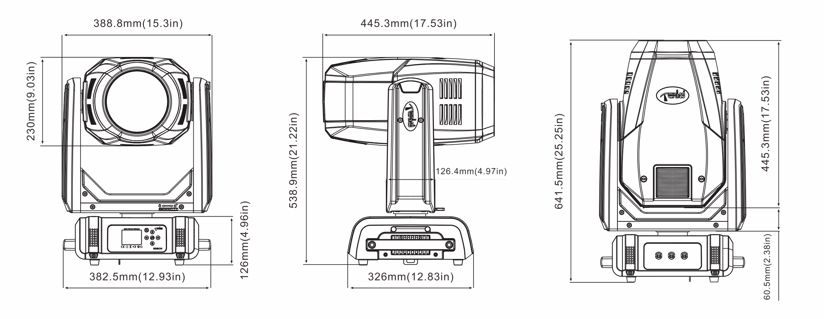 變焦范圍:光束模式:2.2°- 28°;圖案模式:5.5°-45°;染色模式:10°-40°