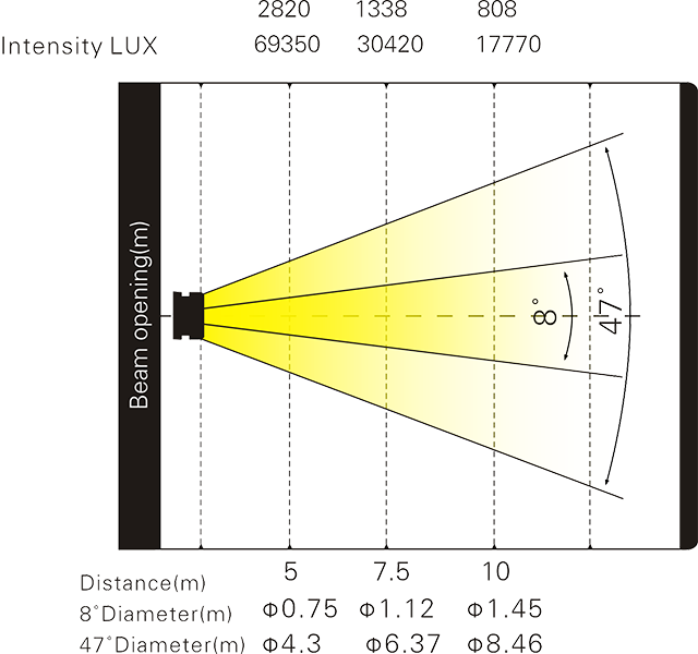 切割效果:一組由4個(gè)切角片組成可控制的光斑切角系統(tǒng),整個(gè)切角系統(tǒng)可做90°旋轉(zhuǎn)
