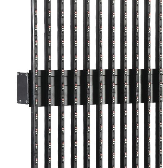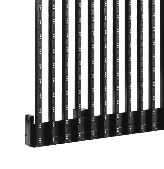“條屏”系列LED顯示屏利用框架結構,把頂部拉條、底部拉條、中心電源盒及LED燈條緊密的連結在一起。這樣的結構設計可以實現(xiàn)快速、方便的前后雙面安裝及維護。
